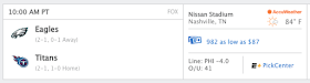 TNF = 40 / 13 / 41 / 14; LA = 13 / 4 / 41 / 14 (Week Four = 40 / 41) (Undfeated = 40 / 41)